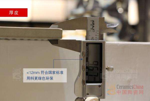 \u00A0 \u00A0 測評人員用電子游標卡尺,精準測量得該系列厚度為9.67mm。用料綠色環(huán)保,符合國家“薄型化”標準,其堅實硬朗,更是勾勒出歐美現(xiàn)代仿古磚的立體形象。