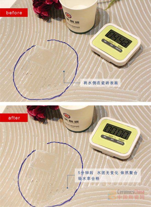 \u00A0\u00A0 \u00A0該產(chǎn)品采用進口特殊釉料,兼具美學與抗污特性,瓷磚表面無滲污、無殘留,高效的防污效果令人點贊,能更大程度滿足消費者對高顏值、優(yōu)質(zhì)性能的追求。