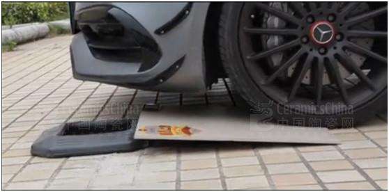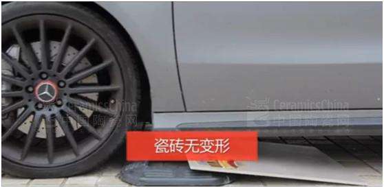 \u00A0 \u00A0 用料十足、抗折強度32MPA,是歐美現(xiàn)代仿古磚凝灰印記系列的技術(shù)特質(zhì)。我們用一部兩噸之重的奔馳汽車,以高能碾壓、“死磕”瓷磚的極致形式,明晰看到:經(jīng)受此番負重后的凝灰印記新品,仍然堅挺勇立,保持平直,并無斷裂與變形。抗擊硬度遠超國標的承壓實力非同一般,令人嘆為觀止。
