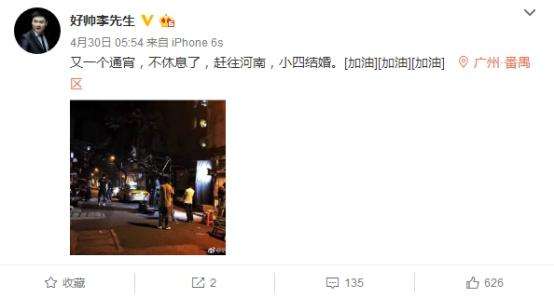 看老李微博博最近更新的時間和內容,就知道電影拍攝期間非常辛苦,劇組工作到半夜是常有的事情。