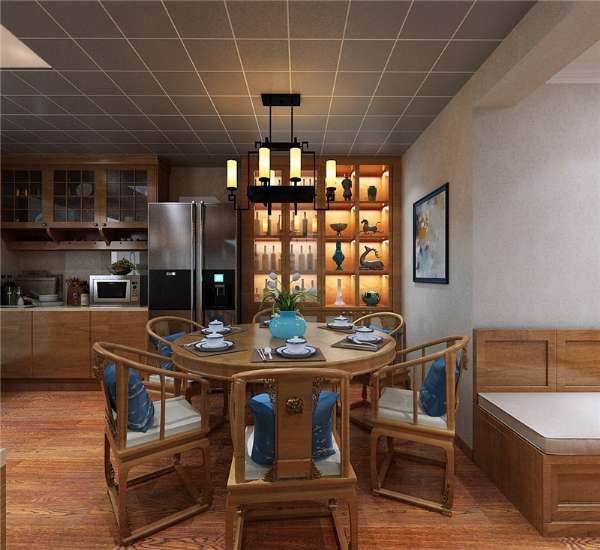 餐廳與廚房為一個空間,所以在不大的空間里,餐桌則選用了圓形桌,也正符合了我們中國人講究的團(tuán)團(tuán)圓圓!