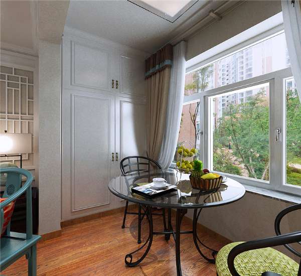 陽臺合并到客廳,它的一邊做了一個偌大的收納柜,可以儲存換季的鞋子等;