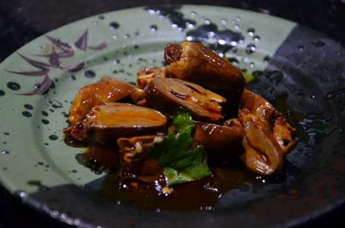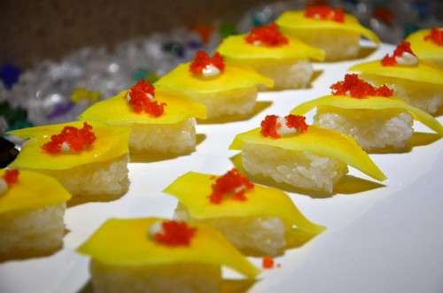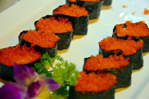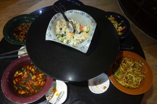 涼菜有蔬菜水果沙拉、拍黃瓜、雞心等,還有精致好吃的壽司,做的還不錯(cuò)。