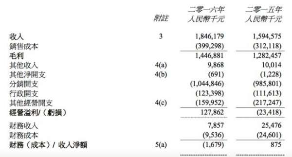 毛利為14.47億元,同比上升12.8%;毛利率為78.4%,較2015年下滑0.2個(gè)百分點(diǎn);權(quán)益股東應(yīng)占溢利為0.40億元,而2015年是虧損0.73億元,升幅為人民幣1.51億元,主要系零售分部收入增長(zhǎng)所致。