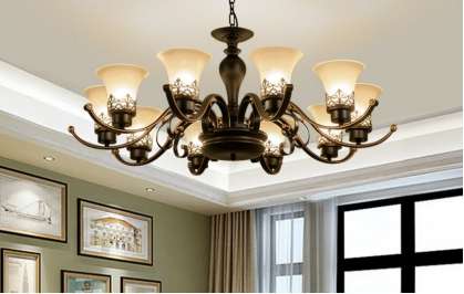吊燈適合于客廳,常用的有歐式燭臺吊燈、中式吊燈、水晶吊燈、羊皮紙吊燈、時尚吊燈、錐形罩花燈、尖扁罩花燈、束腰罩花燈、五叉圓球吊燈、玉蘭罩花燈、橄欖吊燈等。用于居室的分單頭吊燈和多頭吊燈兩種,前者多用于臥室、餐廳;后者宜裝在客廳里。吊燈的安裝高度,其最低點應(yīng)離地面不小于2.2米。