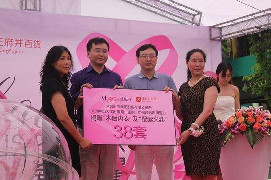 (深圳匯潔集團曼妮芬事業(yè)部總經(jīng)理袁信先生、王府井百貨總經(jīng)理助理江衛(wèi)文先生,中山大學(xué)附屬第一醫(yī)院主任胡麗霞、越秀區(qū)農(nóng)林街道辦事處副主任黃燕萍、越秀區(qū)農(nóng)林街道辦事處副主席張宏出席了本次的捐贈活動)