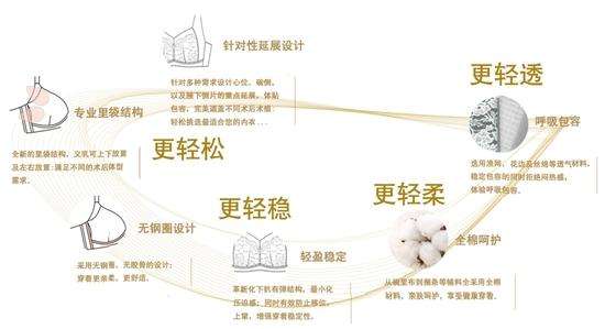 深圳匯潔集團專業(yè)術(shù)后內(nèi)衣及義乳于1997年初始研發(fā),2006年成立“術(shù)后內(nèi)衣研發(fā)項目”小組,該項目以倡導(dǎo)關(guān)注健康、關(guān)愛女性為已任,從乳腺癌術(shù)后人群的心理及生理深入調(diào)查患者需求,進(jìn)行三維掃描、手工測量,同時結(jié)合患者體型變化、病變部位的尺寸與形態(tài)、治療階段、日常生活習(xí)慣、運動需求等多緯度分析產(chǎn)品適體性,設(shè)計制作適合不同手術(shù)階段、不同手術(shù)方式的術(shù)后文胸、義乳及背心。