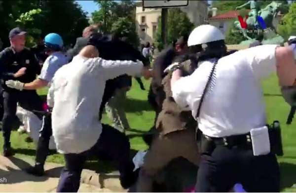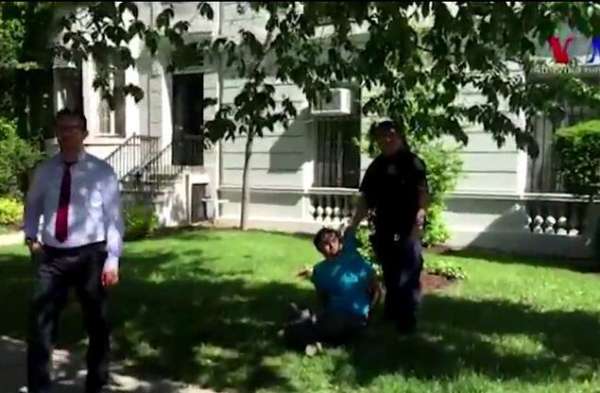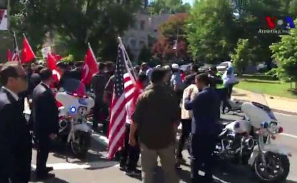 當(dāng)?shù)貢r(shí)間5月16日,就在土耳其總統(tǒng)埃爾多安與美國總統(tǒng)特朗普會面后不久,反對埃爾多安的抗議者在土耳其駐美國大使館外與其支持者發(fā)生肢體沖突,共造成9人受傷,另有2人被捕。