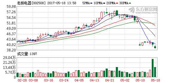 老板電器雖然5月16日小幅收漲,但截至5月17日收盤,報(bào)40.90元,下跌4.35%,盤中更是大跌逾6%。需要說(shuō)明的是,老板電器當(dāng)天成交金額11億元,創(chuàng)下了上市以來(lái)的新高。