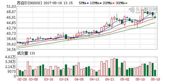 蘇泊爾在5月12日股價(jià)創(chuàng)新高后出現(xiàn)下滑,截至5月17日收盤,報(bào)47.59元,跌2.52%。