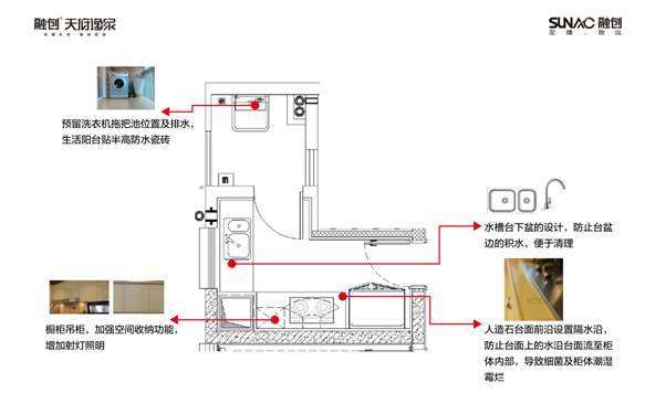 廚房同樣有諸多人性化的考慮,比如柜體高度充分考慮人體工程學(xué);水槽臺下盆的設(shè)計(jì)保證使用的舒適性;櫥柜預(yù)留LED嵌入式燈帶,點(diǎn)亮廚房背光區(qū);柜體內(nèi)隱藏凈水器,從源頭保證飲用水安全。