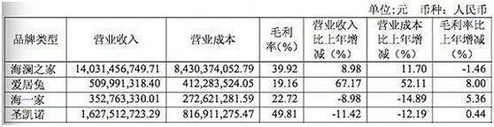 愛居兔營業(yè)收入同比上一年度增幅高達67%;海瀾之家品牌營收比上年僅增8.98%;定位于中低收入人群的高性價比男裝品牌海一家,以及定位于量身定制的商務職業(yè)男裝品牌圣凱諾業(yè)收入同比上一年度分別減少8.98%和11.42%。