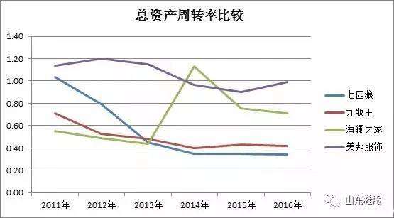 從總資產(chǎn)周轉(zhuǎn)率來(lái)看,美邦服飾和海瀾之家的運(yùn)營(yíng)效率要高于九牧王和七匹狼,但海瀾之家總資產(chǎn)周轉(zhuǎn)率近兩年從高位下滑,七匹狼和九牧王在低位保持穩(wěn)定,美邦服飾企穩(wěn)開始回升。