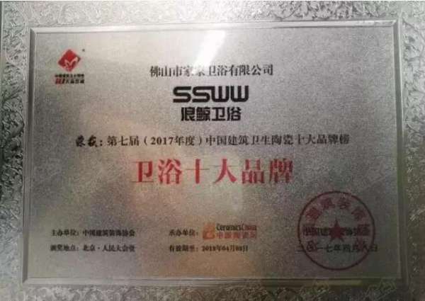 2017年4月8日,第七屆中國(guó)房地產(chǎn)與泛家居行業(yè)跨界峰會(huì)暨2017年度中國(guó)建筑衛(wèi)生陶瓷“十大”品牌榜頒獎(jiǎng)盛典在北京人民大會(huì)堂隆重舉行。浪鯨衛(wèi)浴憑借優(yōu)秀的產(chǎn)品實(shí)力及良好的口碑再次榮獲“十大衛(wèi)浴品牌”大獎(jiǎng)。
