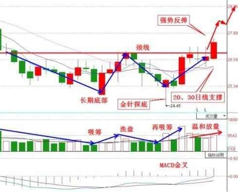 股價從高位下跌,在底部形成雙重底反轉形態,隨后開始打壓洗盤清洗獲利盤,并且在右肩進行第二階段建倉期,從而主力持有大量籌碼。現在持續溫和放量的大陽線突破雙重底頸線,20、30日線支撐,macd金叉,說明上漲趨勢形成。而且今天主力逆勢拉陽說明主力實力雄厚,高度控盤,主力拉升意愿強烈。