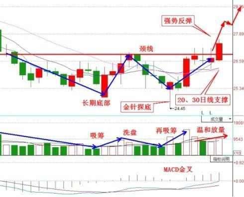 股價(jià)從高位下跌,在底部形成雙重底反轉(zhuǎn)形態(tài),隨后開始打壓洗盤清洗獲利盤,并且在右肩進(jìn)行第二階段建倉期,從而主力持有大量籌碼。現(xiàn)在持續(xù)溫和放量的大陽線突破雙重底頸線,20、30日線支撐,macd金叉,說明上漲趨勢(shì)形成。而且今天主力逆勢(shì)拉陽說明主力實(shí)力雄厚,高度控盤,主力拉升意愿強(qiáng)烈。