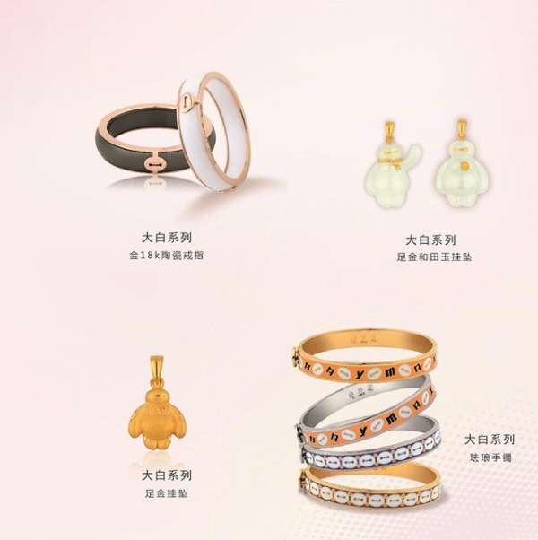 老鳳祥迪士尼新品系列涵蓋米奇米妮,《超能陸戰(zhàn)隊(duì)》的大白、小熊維尼和《海底總動(dòng)員2》四大主題首飾,材質(zhì)包括黃金、K金、彩色寶石、鉆石、珍珠、琺瑯和金鑲玉材質(zhì)等。