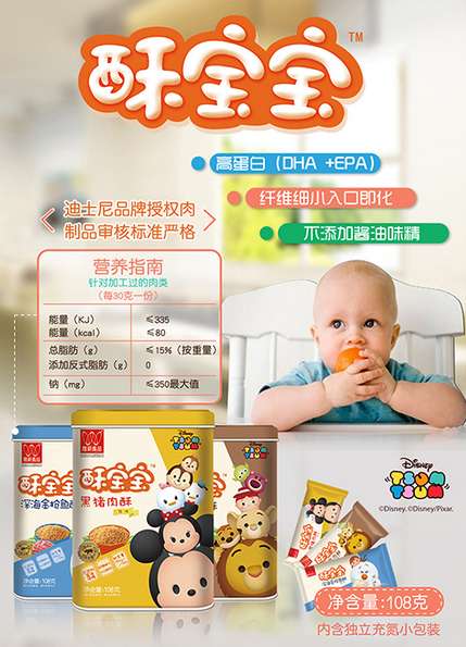 唯新酥寶寶迪士尼系列肉酥歷時(shí)三年,精心打造,迪士尼品牌形象授權(quán),全新配方,尊榮上市。