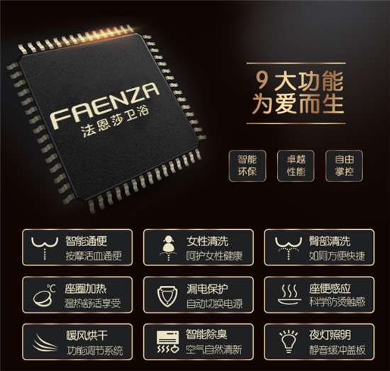法恩莎衛(wèi)浴坐立通集合臀洗、婦洗、除臭、暖風(fēng)烘干、智能節(jié)電等眾多功能于一體,完美打造智能、舒適、簡單的衛(wèi)浴生活,讓你的每一天都暢快自如。