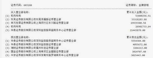 而東吳證券(601555,股吧)東莞鴻福路營(yíng)業(yè)部和申萬宏源(000166,股吧)上海東川路營(yíng)業(yè)部以及華泰證券(601688,股吧)深圳益田路榮超商務(wù)中心營(yíng)業(yè)部則分別買入3332.83萬元、2993.93萬元以及2144.39萬元,同樣大舉買入。
