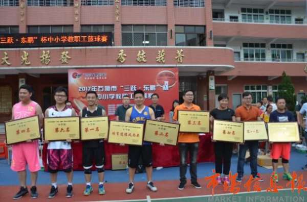 市場(chǎng)信息報(bào)訊(本報(bào)福建信息采集中心 楊開(kāi)勝 黃添洪 攝影報(bào)道)旨在營(yíng)造全民健身濃厚氛圍,提高身體素質(zhì),促進(jìn)教職工以更好的精神狀態(tài)投入工作,5月26日,由石獅市教育局、石獅教育工會(huì)主辦,石獅市湖濱中心校協(xié)辦,由石獅市湖濱街道辦事處林邊小學(xué)承辦的2017年“三躍·東鵬”杯石獅市中小學(xué)教職工籃球聯(lián)賽在林邊小學(xué)圓滿(mǎn)落幕。石獅市教育局蔡芳攀副主任科員,石獅市教育工會(huì)林詩(shī)勇副主席,石獅市湖濱中心校王夏瑋校長(zhǎng)、陳佳祥書(shū)記,三躍建材(福建)有限公司(下稱(chēng):三躍建材)董事長(zhǎng)洪三躍等相關(guān)負(fù)責(zé)人及嘉賓到場(chǎng)觀摩決賽,給參賽隊(duì)員助威,并為獲獎(jiǎng)代表隊(duì)頒獎(jiǎng)。