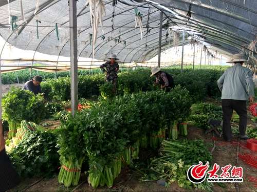 臨沂市工商局派駐臨沭縣朱村第一書(shū)記馬學(xué)清告訴大眾網(wǎng)記者,今年三月份,通過(guò)臨沭縣珍珠苑種植專(zhuān)業(yè)合作社,村民種植了18個(gè)蔬菜大棚,占地60畝,種植韭菜、香菇、芹菜等蔬菜。其中10個(gè)大棚里壓茬種植了從美國(guó)引進(jìn)的優(yōu)質(zhì)西洋芹,沒(méi)想到第一批成熟的芹菜由于某種原因遭遇滯銷(xiāo)。“現(xiàn)在市場(chǎng)行情不好,我們通過(guò)聯(lián)系其他企業(yè)、學(xué)校賣(mài)出去一部分,幸虧愛(ài)心單位紅黃藍(lán)親子園伸出援手,老百姓才不至于賠錢(qián)。”