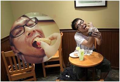 年輕人的專利吃法,頗考驗(yàn)身體的柔韌度和臂力。