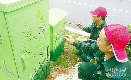 5月3日,南昌市紅谷中大道的組合式變壓器經(jīng)過畫師的巧手描繪,變成了一幅立體風景畫,與周邊的環(huán)境融為一體,相得益彰。