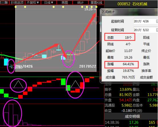 石化機械在4月26號這天,股價縮量回調,并出現倒垂線、機構增持和籌碼堆積標志,那么這個點就是很好的一次絕佳的介入時機,截至22號大家也看到了,累計漲幅已經達到了66%以上,收益還是不錯的。如果這波收益你沒把握住的話,15號時再次出現介入信號,如果跟上第二波行情的朋友40個點的收益也是有的。