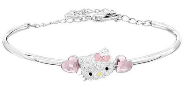 上面這款不銹鋼手鏈,同樣采用了Pointiage?低溫陶瓷技術(shù),Kitty的臉孔上飾有迷人的仿水晶,其兩邊的桃心以粉紅色仿水晶打造,可調(diào)式搭扣滿足不同手腕尺寸的可人們。