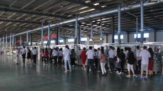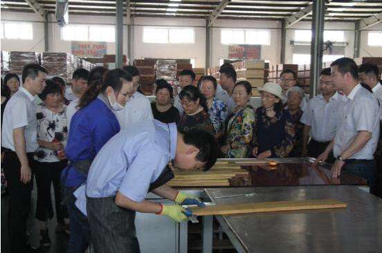 到達(dá)揚(yáng)子地板來(lái)安工廠后,媽媽們被來(lái)安工廠的規(guī)模震撼到了。有媽媽對(duì)兒子說(shuō)“沒(méi)想到你們企業(yè)的工廠這么大!”兒子自豪地回答“那當(dāng)然,我們來(lái)安工廠有6萬(wàn)平米廠房,生產(chǎn)的地板賣到全國(guó)30個(gè)省呢。”步入實(shí)木地板生產(chǎn)車間,媽媽們參觀了超長(zhǎng)全自動(dòng)淋漆生產(chǎn)線,這一條生產(chǎn)線長(zhǎng)度就有上百米,兒子陪著媽媽們足足走了5分鐘。