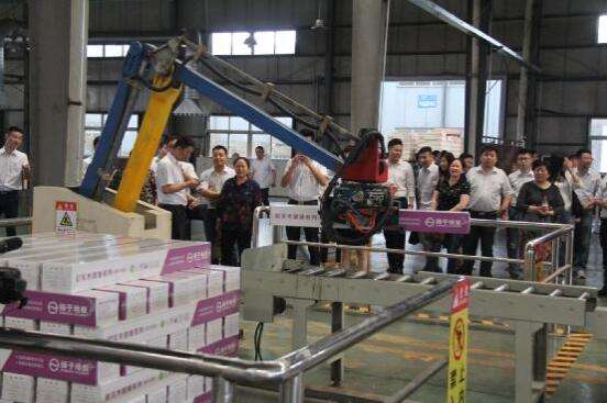 在地板成型車間,媽媽們看到了開(kāi)槽、包裝、搬運(yùn)的各種大型機(jī)械設(shè)備,她們對(duì)揚(yáng)子地板工廠的自動(dòng)化程度表示驚嘆,圍著自動(dòng)、靈活工作的機(jī)械臂紛紛拍照。有些媽媽的兒子早年在工廠實(shí)習(xí)、工作過(guò),他們興致高昂地向媽媽說(shuō)起工廠這些年機(jī)械化水平的提升和對(duì)員工勞作的解放。