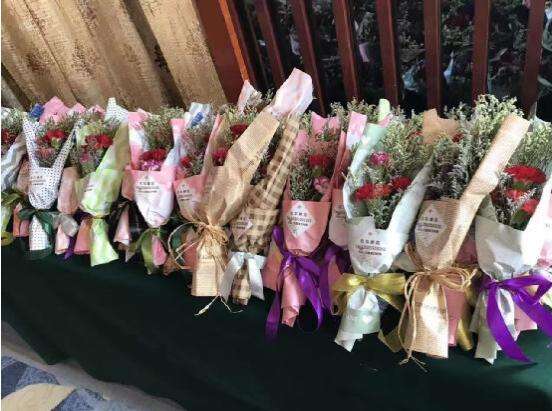 市場(chǎng)后勤人員在宴會(huì)廳電梯前迎接,并準(zhǔn)備了康乃馨獻(xiàn)給各位媽媽