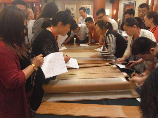 營銷中心高永秀副總經(jīng)理向蘇浙皖經(jīng)銷商發(fā)放“2017年新品實木調(diào)查問卷表”,收集大家對于實木新品的需求,并結(jié)合剛進入評審階段的實木復合新品樣板征求大家的訂價預期。