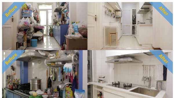 再看廚房的改造前,細細碎碎的生活雜物讓原本就不寬裕的空間顯得更為狹促。柴米油鹽和鍋碗瓢盆無處歸置,雜物填滿了墻面和擱板,顯得較為凌亂。而在宜家的改造下,整個廚房都敞亮了起來——操作臺和料理區各司其職,大小物件各就其位,看起來簡潔通透又不乏生活的氣息。