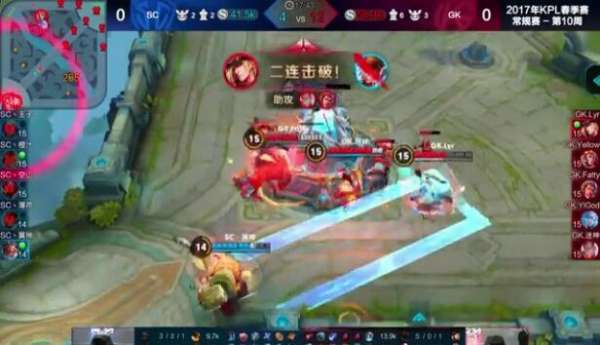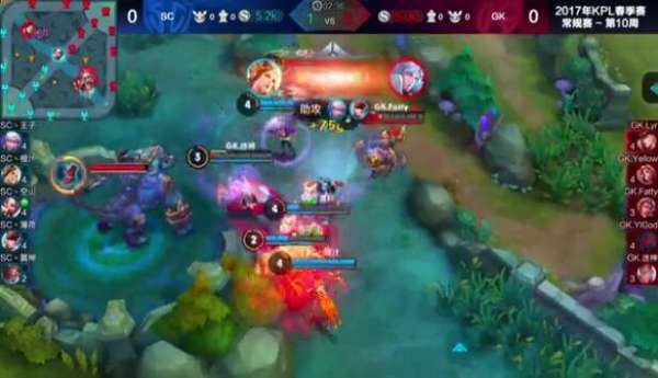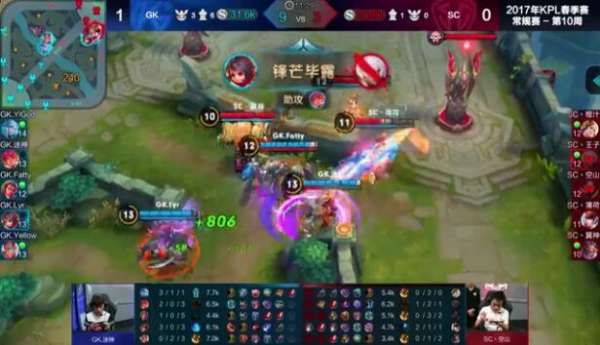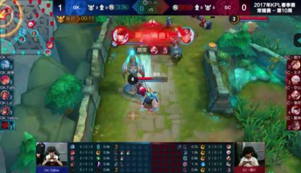 中期:11分21,曹操又一次被單抓,花木蘭開啟重劍打到嬴政,李元芳收下其人頭,隨后GK直接帶著兵線壓進,由于經(jīng)濟差距太大,SC接連被GK帶走,隨后在主宰兵的掩護下,GK一波推掉SC水晶。