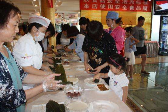 端午節(jié)來臨之際,北京全聚德通州店推出“歡樂粽情 暢享端午”主題活動。本月 28 至 30 日端午節(jié)期間,在一層餐廳開展首屆包粽子比賽。28 日中午 12 點(diǎn),餐廳內(nèi)一片熱鬧繁忙景象。食客們觥籌交錯(cuò),品嘗美味;服務(wù)人員熱情周到,繁忙有序。此時(shí),通州店關(guān)長瑞廚師長開始了關(guān)于端午節(jié)包粽子習(xí)俗的講解。