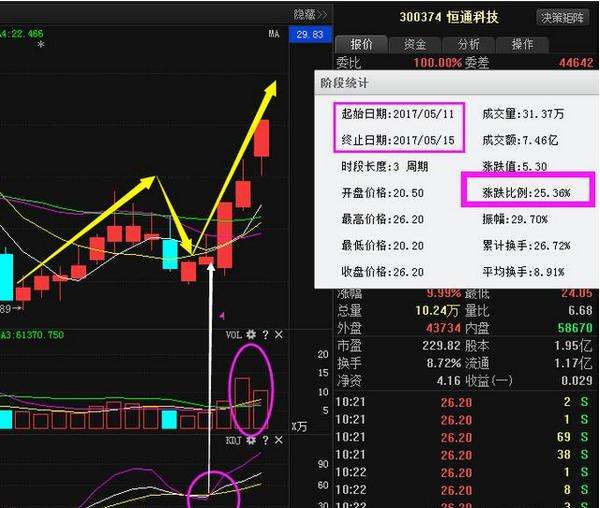 一姐11號給大家講解的恒通科技,當(dāng)時這只票已經(jīng)站穩(wěn)智能輔助線,當(dāng)天漲停并且出現(xiàn)一陽穿四線的現(xiàn)象,量能較前期也有放大,KDJ發(fā)出金叉,MACD也是已經(jīng)翻紅,于是一姐果斷的提示了大家這只牛股,獲利也有25.38%的漲幅了,在這里恭喜一下把握住的朋友。