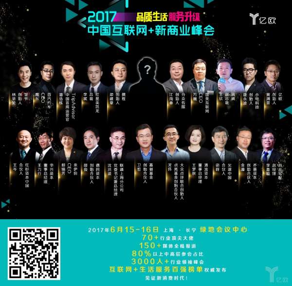 重磅福利!【2017中國(guó)互聯(lián)網(wǎng)+新商業(yè)峰會(huì)】,6月15-16日兩天3000人次,攜程創(chuàng)始人梁建章,嘉御基金創(chuàng)始人、前阿里巴巴CEO衛(wèi)哲,分眾傳媒創(chuàng)始人江南春等嘉賓已確認(rèn)出席,期待你的參與,限量鉅惠票等你拿!