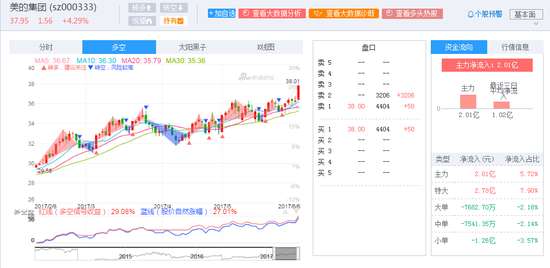 新浪財(cái)經(jīng)訊 6月6日消息,美的集團(tuán)股價(jià)持續(xù)拉升,迭創(chuàng)歷史新高,截止發(fā)稿,報(bào)37.91元,漲4.26%。