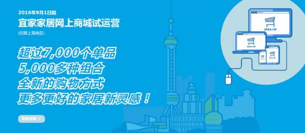 2016 年 8 月,宜家中國在 2017 財年發布會上宣布,將在 8 月底正式在中國推出電子商務業務,暫時在上海地區試運行。