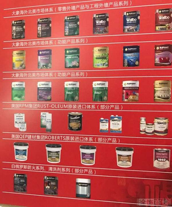 大象紅楓葉列舉的主要舉措包括:全面恢復大象品牌產(chǎn)品的生產(chǎn)供應、并大量供給品質(zhì)全面提升的海外產(chǎn)品(主要在北美市場);供應與美國RPM、芬蘭等合作的原裝進口水性木器漆、木油、木蠟油、浴缸及瓷磚修復涂料等產(chǎn)品;引進QEP建材集團屬下ROBERTS品牌,產(chǎn)品涵蓋防水系列、密封膠系列、瓷磚天風粘貼系列等……