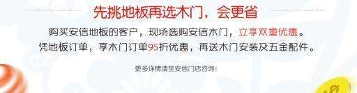 為了讓廣大用戶放心的購買,放心的使用,安信地板承諾:購買安信實木地熱地板享受25年保用,實木地板20年保用,貫徹新消法,所有條例都有廠家總部保障。23年專心治木,只為讓每個人擁有溫馨,健康,舒適的居住環(huán)境。無論你現在是打算裝修,還是正在裝修,無論你喜歡什么樣的風格,顏色亦或是心儀的價格,安信地板總有一款滿足你。活動詳情可至安信地板門店咨詢報名。