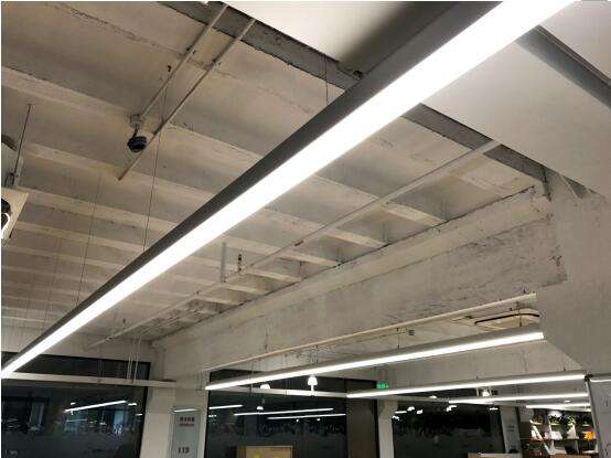 再比如,由于建筑結(jié)構(gòu)限制,需要盡量減少對(duì)結(jié)構(gòu)的改變,再結(jié)合辦公位置,燈具盡量沿著梁排布,需要兼顧到天花的光分布,所以需要選擇出光面較寬的燈具,但是又不能上下出光。針對(duì)此,歐普商用照明定制了三面出光的辦公吊燈。