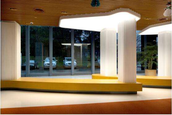 大堂作為公司的門(mén)面,在光線條件有限情況下,歐普商照通過(guò)光影運(yùn)用在較小空間內(nèi)、制造明暗變化,并利用發(fā)光膜點(diǎn)綴柱子,明亮度對(duì)比強(qiáng)烈,形成很強(qiáng)的視覺(jué)沖擊力。