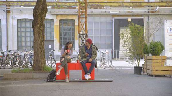最近在米蘭街頭出現(xiàn)了一條紅色長凳。當路人坐上去后,隱藏在凳子里的傳感器便會啟動,讓坐在椅子兩頭的陌生人彼此靠近,簡直是撩妹神凳。
