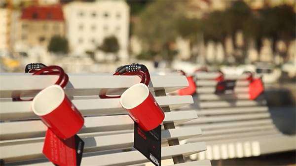 活動使用的是雀巢的當家小紅杯,1000個杯子用密碼鎖鎖在街頭欄桿和座椅上。人們可以根據(jù)提示在雀巢Facebook主頁留言,把密碼鎖的編碼告知主頁君,不一會就會收到密碼,獲得咖啡杯。有了杯子之后,你就可以去指定地點取一杯咖啡了。