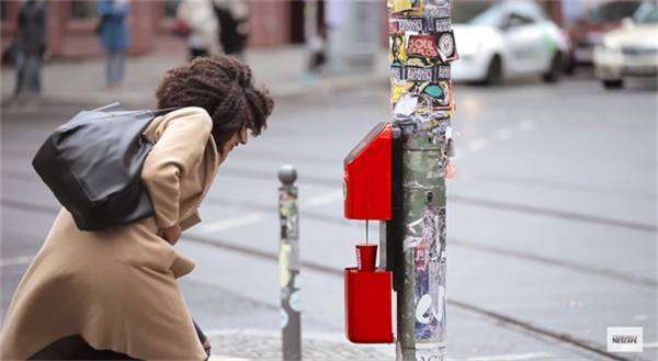 雀巢給柏林的市民們帶來的一個驚喜,他們在斑馬線兩側(cè)的紅綠燈柱子上,各安置了一個特殊的咖啡機,兩側(cè)的咖啡機是“即時連接”的。