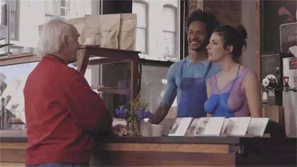 為了宣傳旗下的奶精Natural Bliss純天然無添加,于是雀巢決定赤裸裸地展示自己產(chǎn)品給顧客。他們選擇了一家咖啡店,十分大膽地讓服務員清一色全裸,考慮到不能與惡俗沾邊,給服務員來了場人體彩繪。