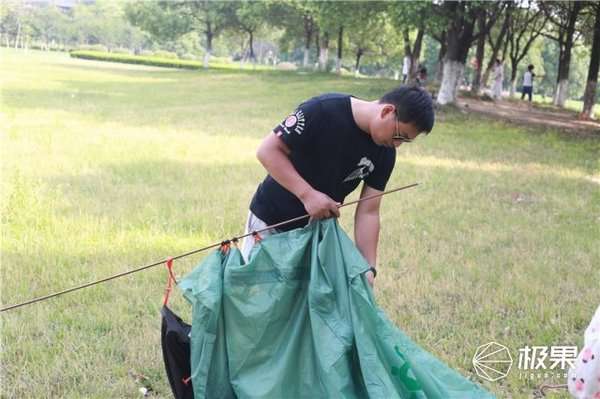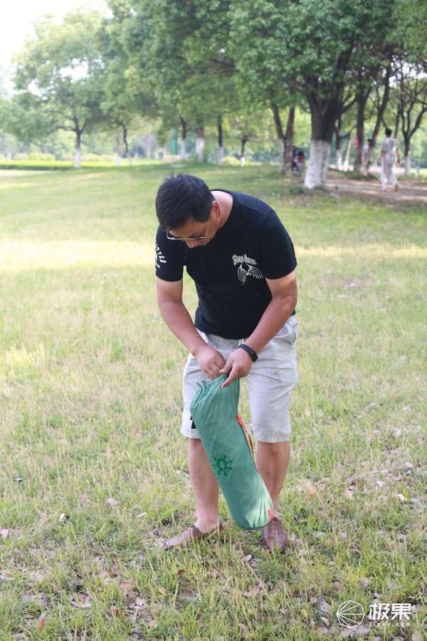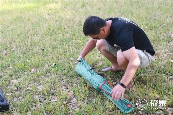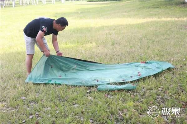 展開(kāi)帳篷 平鋪在草地上,根據(jù)安裝說(shuō)明,找到安裝方式。